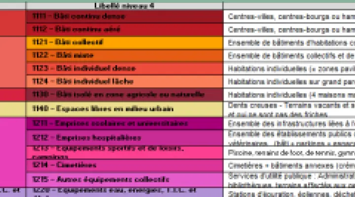 OCS Grand Est – Nomenclature simplifiée, un document mettant en cohérence les couleurs de la cartographie, une description simplifiée et une seconde description détaillée.