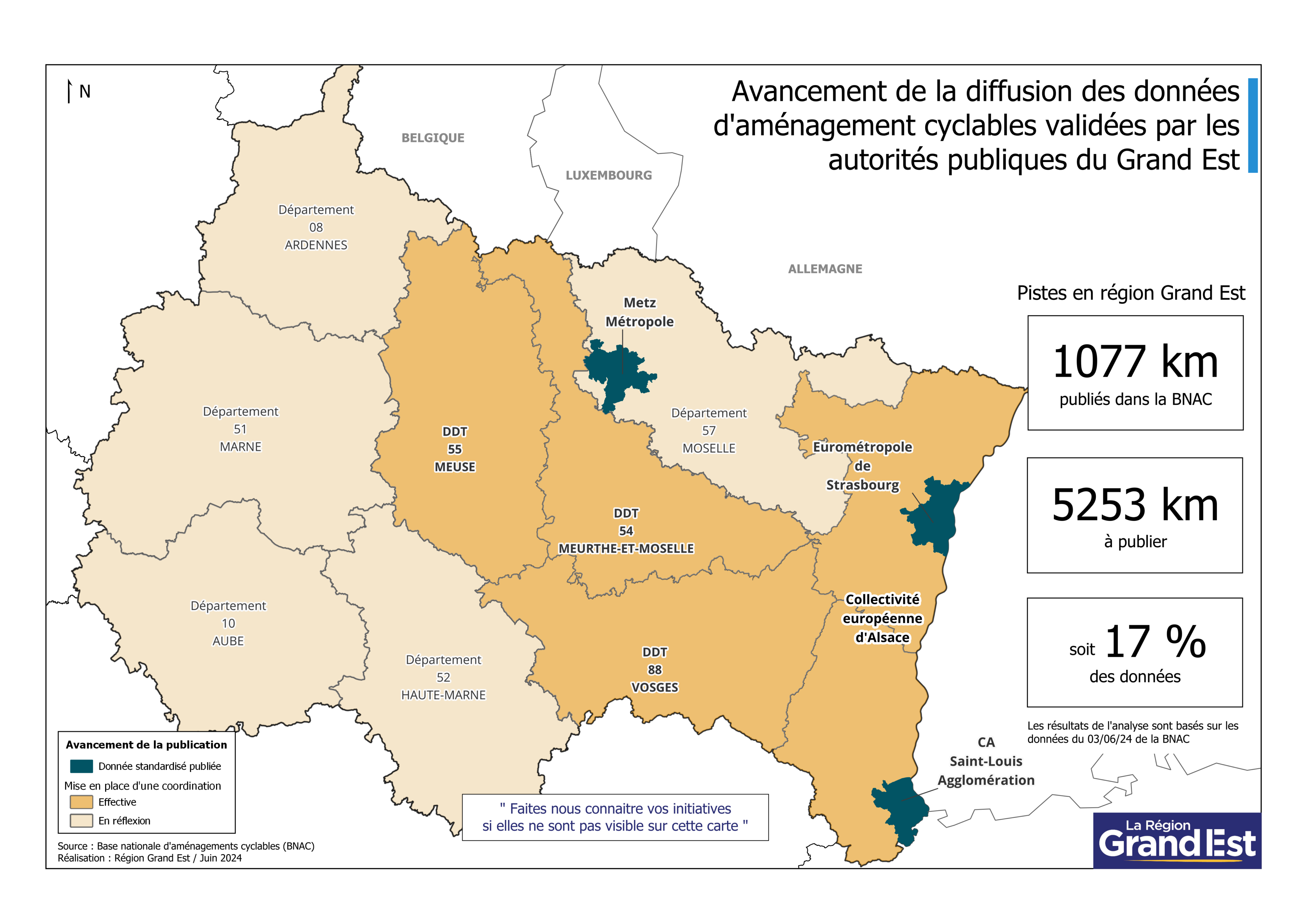 03 – Carte et chiffres clés d’aménagement cyclable dans la Région Grand Est